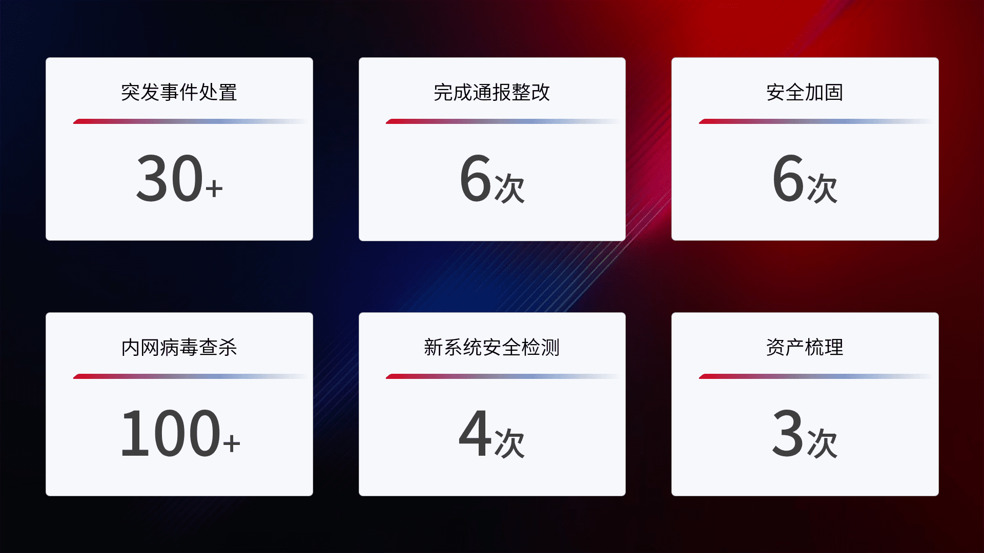 根据客户需求定制整改方案,,,强化应急演练,,提升网络安全事件应对能力。。。。